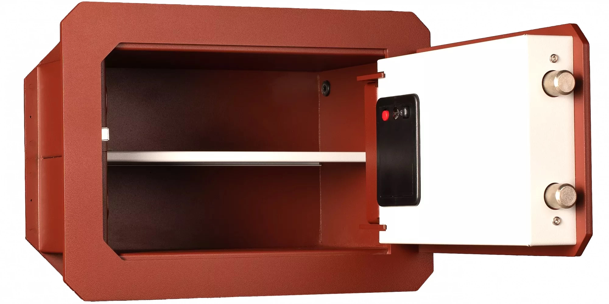Для удобного и упорядоченного размещения ценностей предусмотрена съёмная полка, разделяющая пространство сейфа на два уровня.